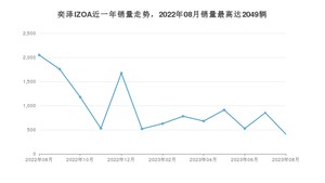 2023年8月,奕泽IZOA销量为409辆,同比下降80.04%,环比下降52.05%。2022年08月-2023年08月份,奕泽IZOA销量为12484辆,同比下降62.23%。