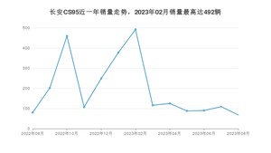 2023年8月,长安CS95销量为68辆,同比下降15%,环比下降37.61%。2022年08月-2023年08月份,长安CS95销量为2562辆,同比增长21.25%。