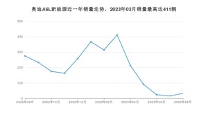 2023年8月,奥迪A6L新能源销量为32辆,同比下降88.36%,环比增长100%。2022年08月-2023年08月份,奥迪A6L新能源销量为2574辆,同比下降19.23%。