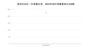2023年8月,蔚来EC6销量为228辆,2022年08月-2023年08月份,蔚来EC6销量为228辆,