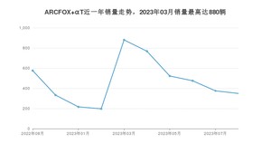 2023年8月,ARCFOX αT销量为349辆,同比下降39.41%,环比下降6.93%。2022年08月-2023年08月份,ARCFOX αT销量为4691辆,同比下降13.78%。