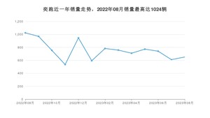 2023年8月,奕跑销量为651辆,同比下降36.43%,环比增长6.55%。2022年08月-2023年08月份,奕跑销量为9850辆,同比下降42.23%。