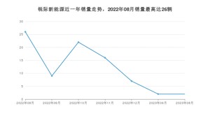 2023年8月,锐际新能源销量为2辆,同比下降92.31%,2022年08月-2023年08月份,锐际新能源销量为84辆,同比下降84.5%。