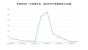 2023年8月,荣威RX8销量为9辆,同比下降85.94%,环比增长28.57%。2022年08月-2023年08月份,荣威RX8销量为1475辆,同比下降45.79%。