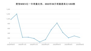 2023年8月,菱智M5EV销量为222辆,同比下降77.35%,环比下降23.71%。2022年08月-2023年08月份,菱智M5EV销量为5545辆,同比增长163.17%。