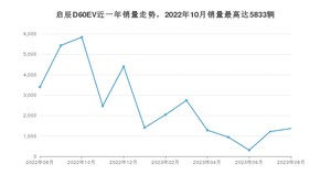 2023年8月,启辰D60EV销量为1368辆,同比下降59.73%,环比增长12.59%。2022年08月-2023年08月份,启辰D60EV销量为32833辆,同比增长1.66%。