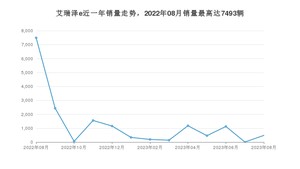 2023年8月,艾瑞泽e销量为481辆,同比下降93.58%,环比增长6%。2022年08月-2023年08月份,艾瑞泽e销量为16610辆,同比增长17.39%。