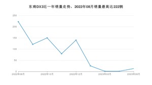 2023年8月,东南DX3销量为13辆,同比下降94.14%,2022年08月-2023年08月份,东南DX3销量为752辆,同比下降76.9%。