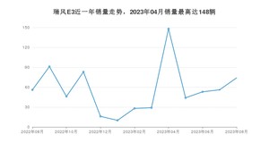 2023年8月,瑞风E3销量为74辆,同比增长32.14%,环比增长32.14%。2022年08月-2023年08月份,瑞风E3销量为734辆,同比增长456.06%。