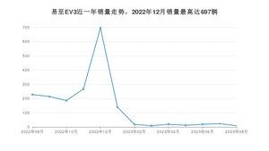 2023年8月,易至EV3销量为9辆,同比下降96.05%,环比下降60.87%。2022年08月-2023年08月份,易至EV3销量为1841辆,同比下降68.49%。