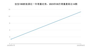 2023年8月,佳宝V80新能源销量为14辆,环比增长600%。2022年08月-2023年08月份,佳宝V80新能源销量为16辆,