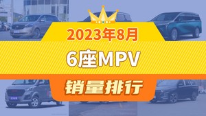 2023年8月的乘用车销量数据已经出炉,据众车网汽车行业数据监测显示,8月国内乘用车市场销量达到172.31万辆,同比下降6.17%,环比增长7.45%。每月各个细分市场的销量排行榜,也成为了大家所关注的话题,今天众车网为大家带来了,2023年8月6座MPV的销量排行榜单,有哪些车型能跻身销量榜呢?下面我们直接看数据。