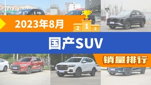 2023年8月的乘用车销量数据已经出炉,据众车网汽车行业数据监测显示,8月国内乘用车市场销量达到172.31万辆,同比下降6.17%,环比增长7.45%。每月各个细分市场的销量排行榜,也成为了大家所关注的话题,今天众车网为大家带来了,2023年8月国产SUV的销量排行榜单,有哪些车型能跻身销量榜呢?下面我们直接看数据。