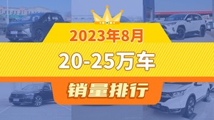 2023年8月的乘用车销量数据已经出炉,据众车网汽车行业数据监测显示,8月国内乘用车市场销量达到172.31万辆,同比下降6.17%,环比增长7.45%。每月各个细分市场的销量排行榜,也成为了大家所关注的话题,今天众车网为大家带来了,2023年8月20-25万车的销量排行榜单,有哪些车型能跻身销量榜呢?下面我们直接看数据。