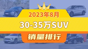 2023年8月的乘用车销量数据已经出炉,据众车网汽车行业数据监测显示,8月国内乘用车市场销量达到172.31万辆,同比下降6.17%,环比增长7.45%。每月各个细分市场的销量排行榜,也成为了大家所关注的话题,今天众车网为大家带来了,2023年8月30-35万SUV的销量排行榜单,有哪些车型能跻身销量榜呢?下面我们直接看数据。