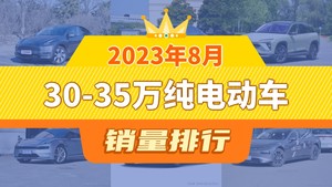 2023年8月的乘用车销量数据已经出炉,据众车网汽车行业数据监测显示,8月国内乘用车市场销量达到172.31万辆,同比下降6.17%,环比增长7.45%。每月各个细分市场的销量排行榜,也成为了大家所关注的话题,今天众车网为大家带来了,2023年8月30-35万纯电动车的销量排行榜单,有哪些车型能跻身销量榜呢?下面我们直接看数据。