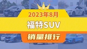 2023年8月的乘用车销量数据已经出炉,据众车网汽车行业数据监测显示,8月国内乘用车市场销量达到172.31万辆,同比下降6.17%,环比增长7.45%。每月各个细分市场的销量排行榜,也成为了大家所关注的话题,今天众车网为大家带来了,2023年8月福特SUV的销量排行榜单,有哪些车型能跻身销量榜呢?下面我们直接看数据。