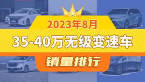 2023年8月35-40万无级变速车销量排行榜,格瑞维亚屈居第三,奥德赛成最大黑马