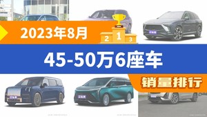 2023年8月的乘用车销量数据已经出炉,据众车网汽车行业数据监测显示,8月国内乘用车市场销量达到172.31万辆,同比下降6.17%,环比增长7.45%。每月各个细分市场的销量排行榜,也成为了大家所关注的话题,今天众车网为大家带来了,2023年8月45-50万6座车的销量排行榜单,有哪些车型能跻身销量榜呢?下面我们直接看数据。