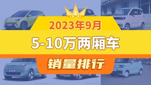 2023年9月5-10万两厢车销量排行榜,海鸥以35011辆夺冠,零跑T03升至第7名