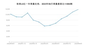 2023年9月,理想L9销量为11884辆,同比增长17.4%,环比增长8.7%。2022年09月-2023年09月份,理想L9销量为113726辆,同比增长1%。