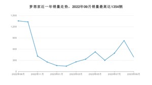 2023年9月,梦想家销量为387辆,同比下降71.42%,环比下降53.26%。2022年09月-2023年09月份,梦想家销量为6764辆,同比增长70.46%。