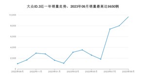 2023年9月,大众ID.3销量为9650辆,同比增长887.72%,环比增长20.85%。2022年09月-2023年09月份,大众ID.3销量为47029辆,同比增长106.24%。