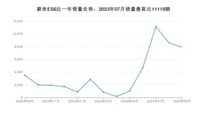 2023年9月,蔚来ES6销量为7896辆,同比增长125.15%,环比下降8.2%。2022年09月-2023年09月份,蔚来ES6销量为47190辆,同比下降12.33%。