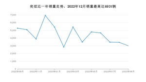 2023年9月,奕炫销量为2993辆,同比下降43.35%,环比下降13.35%。2022年09月-2023年09月份,奕炫销量为57762辆,同比下降31.55%。