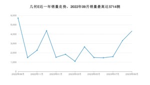 2023年9月,几何E销量为4332辆,同比下降24.19%,环比增长31.39%。2022年09月-2023年09月份,几何E销量为33105辆,同比增长55.92%。