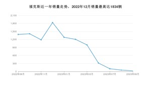 2023年9月,福克斯销量为24辆,同比下降98.27%,环比下降53.85%。2022年09月-2023年09月份,福克斯销量为9803辆,同比下降47.08%。