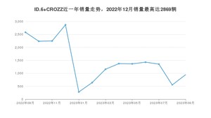 2023年9月,ID.6 CROZZ销量为945辆,同比下降63.41%,环比增长71.51%。2022年09月-2023年09月份,ID.6 CROZZ销量为19034辆,同比下降28.34%。