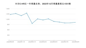 2023年9月,丰田C-HR销量为1024辆,同比下降30.72%,环比增长2.81%。2022年09月-2023年09月份,丰田C-HR销量为15657辆,同比下降45.03%。