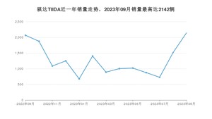2023年9月,骐达TIIDA销量为2142辆,同比增长3.83%,环比增长41.76%。2022年09月-2023年09月份,骐达TIIDA销量为16517辆,同比下降57.67%。