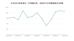 2023年9月,本田CR-V新能源销量为851辆,同比增长40.2%,环比下降3.19%。2022年09月-2023年09月份,本田CR-V新能源销量为8826辆,同比下降37.25%。