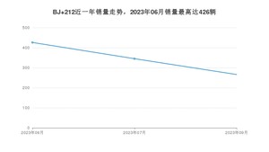 在自主车市场,BJ 212在2023年9月的市场份额,为0.03%,销量位列第180,。2022年09月-2023年09月,BJ 212的累计销量达到1037辆,在自主车销量排名中位列第245名。