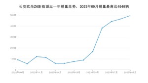 2023年9月,长安欧尚Z6新能源销量为4949辆,同比增长439.69%,环比增长6.45%。2022年09月-2023年09月份,长安欧尚Z6新能源销量为26119辆,同比增长2%。