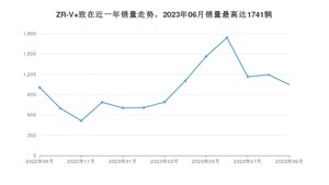 2023年9月,ZR-V 致在销量为1047辆,同比增长4.18%,环比下降12.24%。2022年09月-2023年09月份,ZR-V 致在销量为12913辆,同比增长1%。