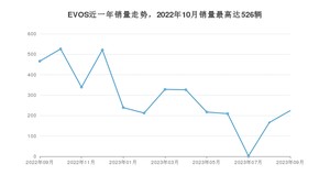 2023年9月,EVOS销量为224辆,同比下降51.93%,环比增长34.94%。2022年09月-2023年09月份,EVOS销量为3775辆,同比下降17.14%。