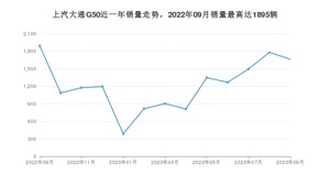 2023年9月,上汽大通G50销量为1666辆,同比下降12.08%,环比下降6.46%。2022年09月-2023年09月份,上汽大通G50销量为15840辆,同比下降28.33%。