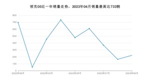 2023年9月,领克05销量为222辆,同比下降68.1%,环比增长36.2%。2022年09月-2023年09月份,领克05销量为3773辆,同比下降74.81%。