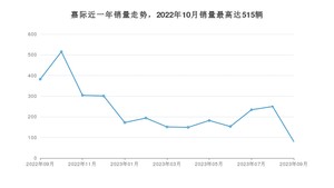 2023年9月,嘉际销量为80辆,同比下降79.06%,环比下降68%。2022年09月-2023年09月份,嘉际销量为3067辆,同比下降53.34%。