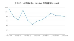 2023年9月,探岳X销量为792辆,同比下降30.53%,环比下降4.69%。2022年09月-2023年09月份,探岳X销量为10167辆,同比下降33.16%。