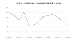 2023年9月,领界销量为106辆,同比下降56.91%,环比下降32.48%。2022年09月-2023年09月份,领界销量为2402辆,同比下降88.21%。