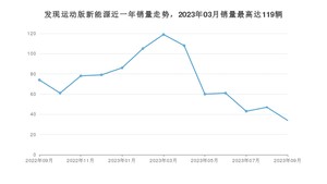 2023年9月,发现运动版新能源销量为34辆,同比下降54.05%,环比下降27.66%。2022年09月-2023年09月份,发现运动版新能源销量为955辆,同比下降30.09%。