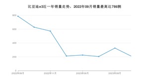2023年9月,比亚迪e3销量为211辆,同比下降73.16%,环比下降35.28%。2022年09月-2023年09月份,比亚迪e3销量为3164辆,同比下降54.59%。