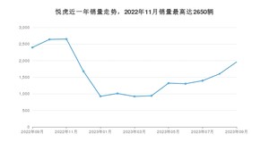 2023年9月,悦虎销量为1960辆,同比下降18.27%,环比增长22.42%。2022年09月-2023年09月份,悦虎销量为20744辆,同比增长96.64%。