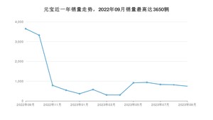 2023年9月,元宝销量为745辆,同比下降79.59%,环比下降8.36%。2022年09月-2023年09月份,元宝销量为14078辆,同比增长285.7%。