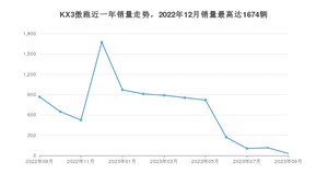2023年9月,KX3傲跑销量为30辆,同比下降96.54%,环比下降73.91%。2022年09月-2023年09月份,KX3傲跑销量为8678辆,同比下降57.76%。