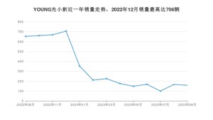 2023年9月,YOUNG光小新销量为158辆,同比下降75.8%,环比下降4.82%。2022年09月-2023年09月份,YOUNG光小新销量为4394辆,同比下降18.54%。